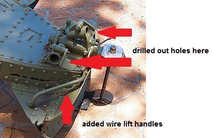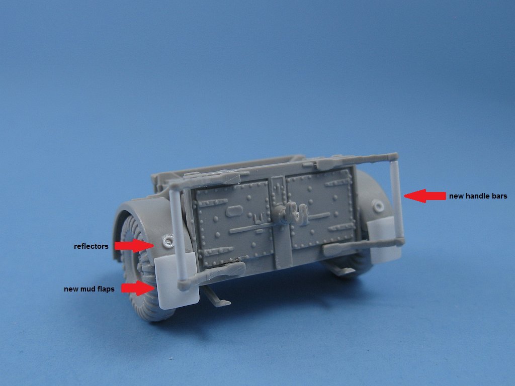 I replaced the handles located on the side of the trailer's tongue (parts 13B) as they were too chunky and used a thin plastic rod to represent them extended