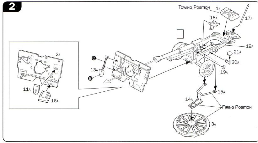 to trail, then add the spade parts 22A & 23A in this order. There is a gap at the top of the trail that should be filled.