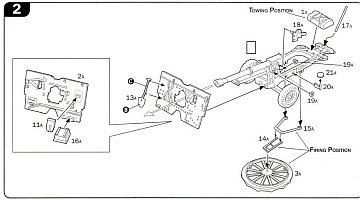 Step 1 is to build the trail, spade, barrel and add the wheels.