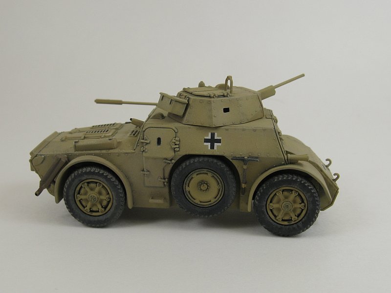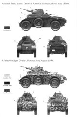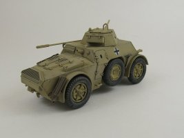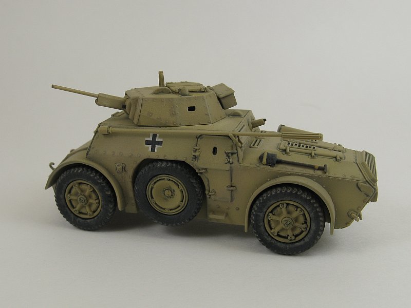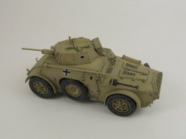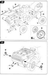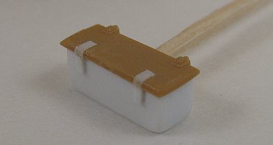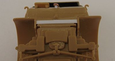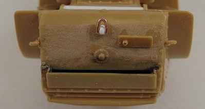 I left off part 45A because it was going to go under a set of extra jerry cans that I added to the front glacis. The jerry cans came from the spares box, and the frame was fashioned from some left over brass strip. I also replaced the rather thick fender markers on the front fenders with a new pair manufactured from some guitar wire with the balls at the top fashioned from super glue and baking soda. I didn't bother adding any markers to the rear fenders as most AB-41 pictures I found on the web didn't have them. | |||