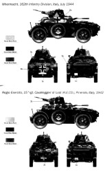 I replaced the molded on rear tow hook with a scratch built item made from some plastic for the mount and a loop made from some copper wire. I drilled out the opening for the exhaust pipe, turret gun barrel and the horns. The foot step rungs (part 13A) located below the rear doors just needed some thinning to look more acceptable. In my opinion Italeri are currently in the fore with regards to out of the box decals, and these are a prime example as to why I believe this, with all images being in register, opaque and very thin. I used the kit decals for both builds and they proved to be excellent as expected. A few applications with some decal solvent such as Microsol got them to conform nicely to the model while their opacity blocked any chance of bleed through of the colours underneath. |