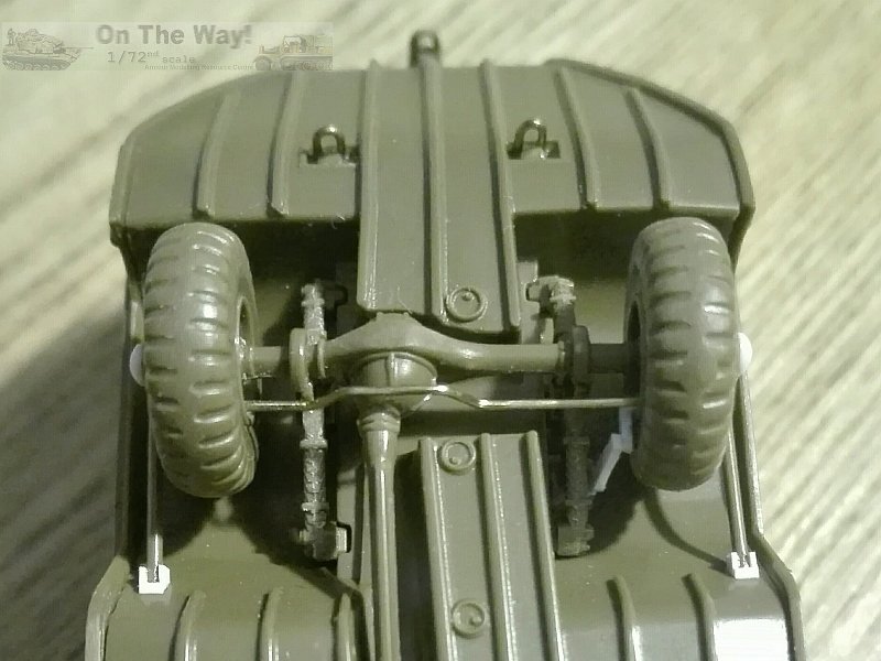 - The forward axle has the steering tie rod moulded on. It was replaced with a new one made by metal wire and in the correct vertical position (the kit one is