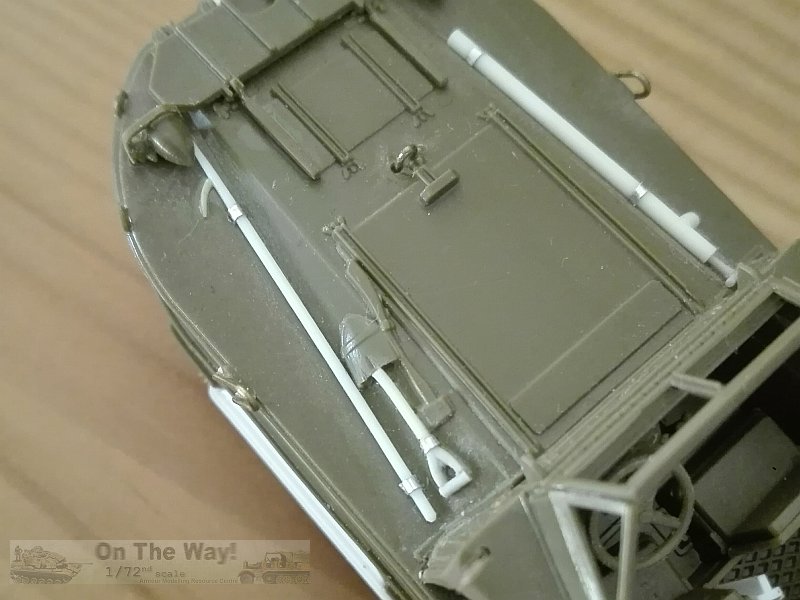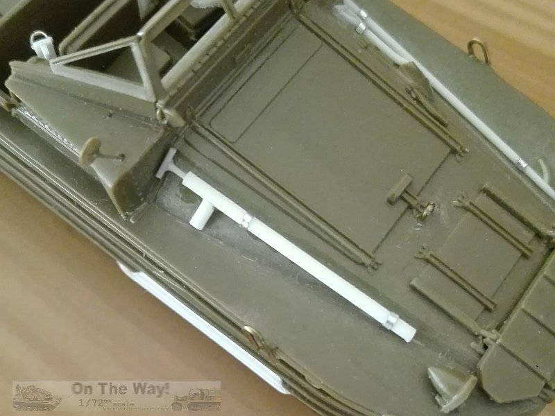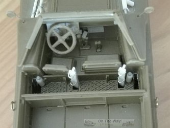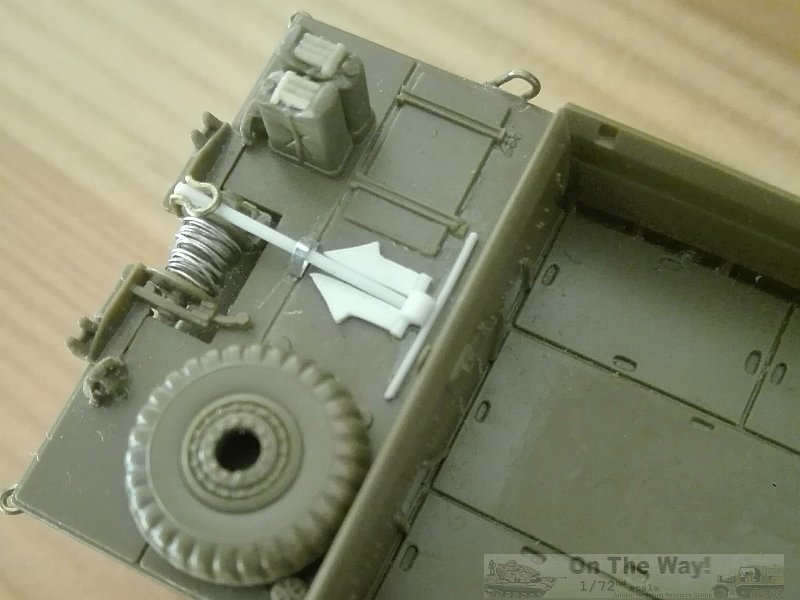 - A shaped piece of sprue provided a map case, glued in front of the driver assistant.