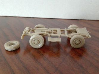 The Italeri kit is the release of the older 1976 ESCI kit. It is composed of two moulds, sand yellow in my case but I've also seen olive green moulds; one has the common pieces shared by the M6 37mm GMC (aka WC-55) Italeri kit # 7025 and the other has the flat bed and the tarpaulin. The decal set and the instructions complete the kit. No transparent parts are given.