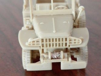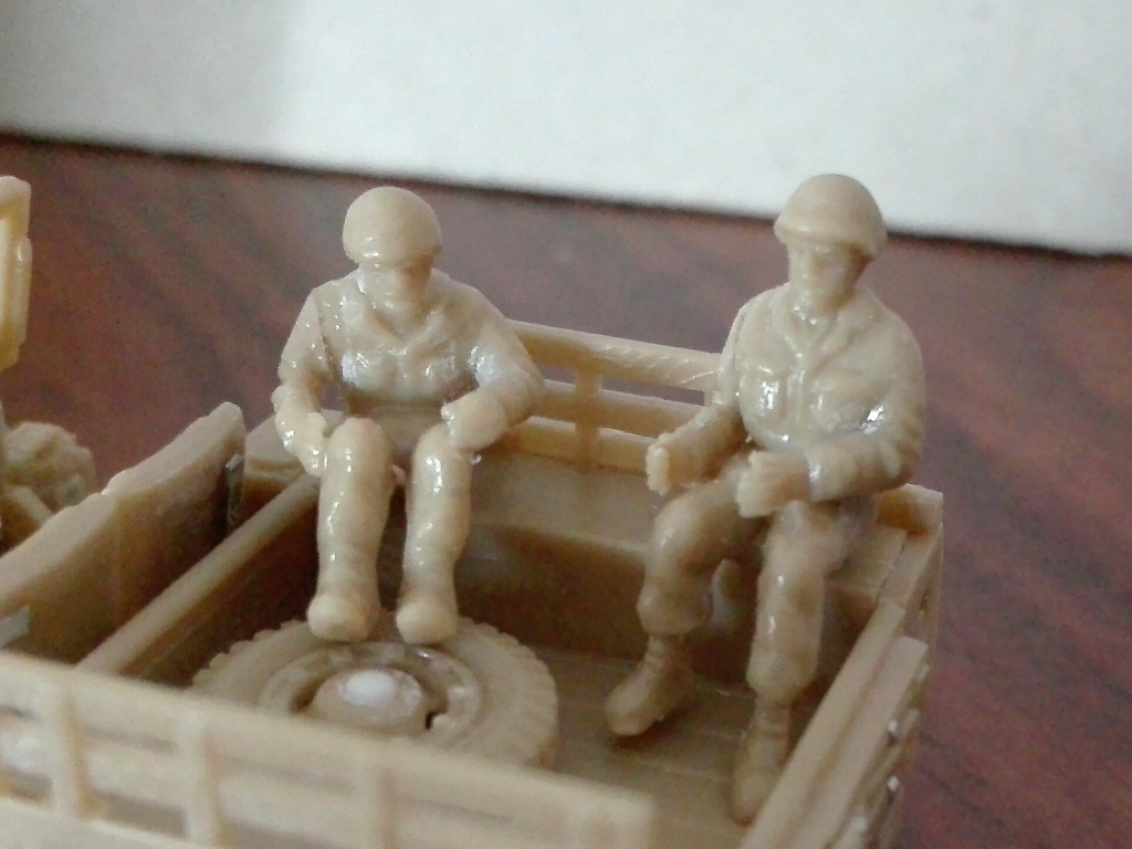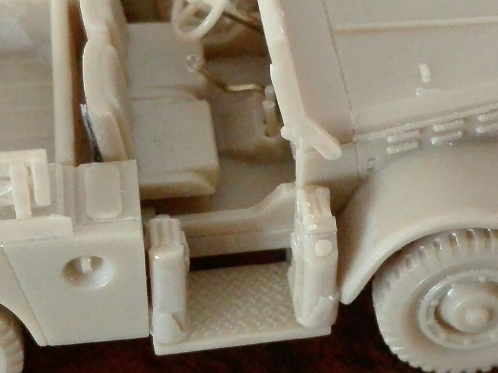 Close observation reveals this apparently is a good kit. The pieces are finely sculpted (see for example the leaf springs or the surface of the steps). There are some pieces nicely moulded separately, such as the tools. A thing immediately perceptible is that there are a lot of ejector pin marks to be erased. Cleaning confirms some pieces are as fragile as they look. The kit also has two seated figures, a driver and a passenger. They wear the battle dress, the helmet and the boots (without the leggings); no accoutrements or weapons. Details are soft and both need a bit of reshaping. If available in the spare box, a replacement head would be a good idea. Despite this, a crew is always a welcome bonus.