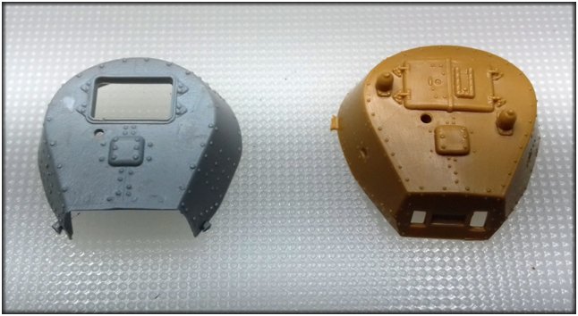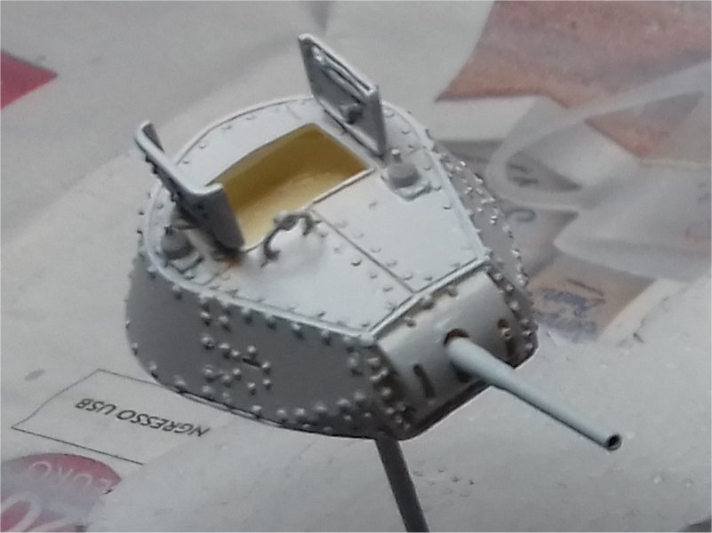 No producer on the market sells an "early" M13/40 turret, so the "early style" roof must be scratchbuilt if needed, by cutting out the square plate and re-creating all the riveting and paneling, like Andrea De Felici did :