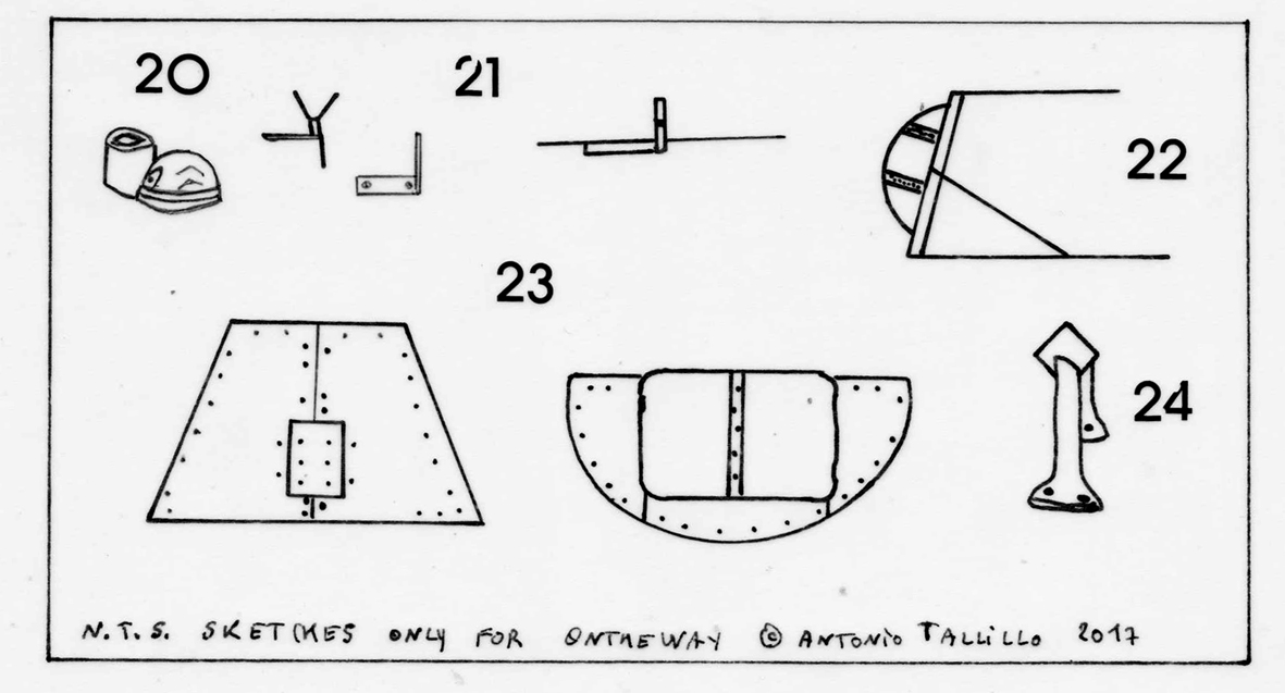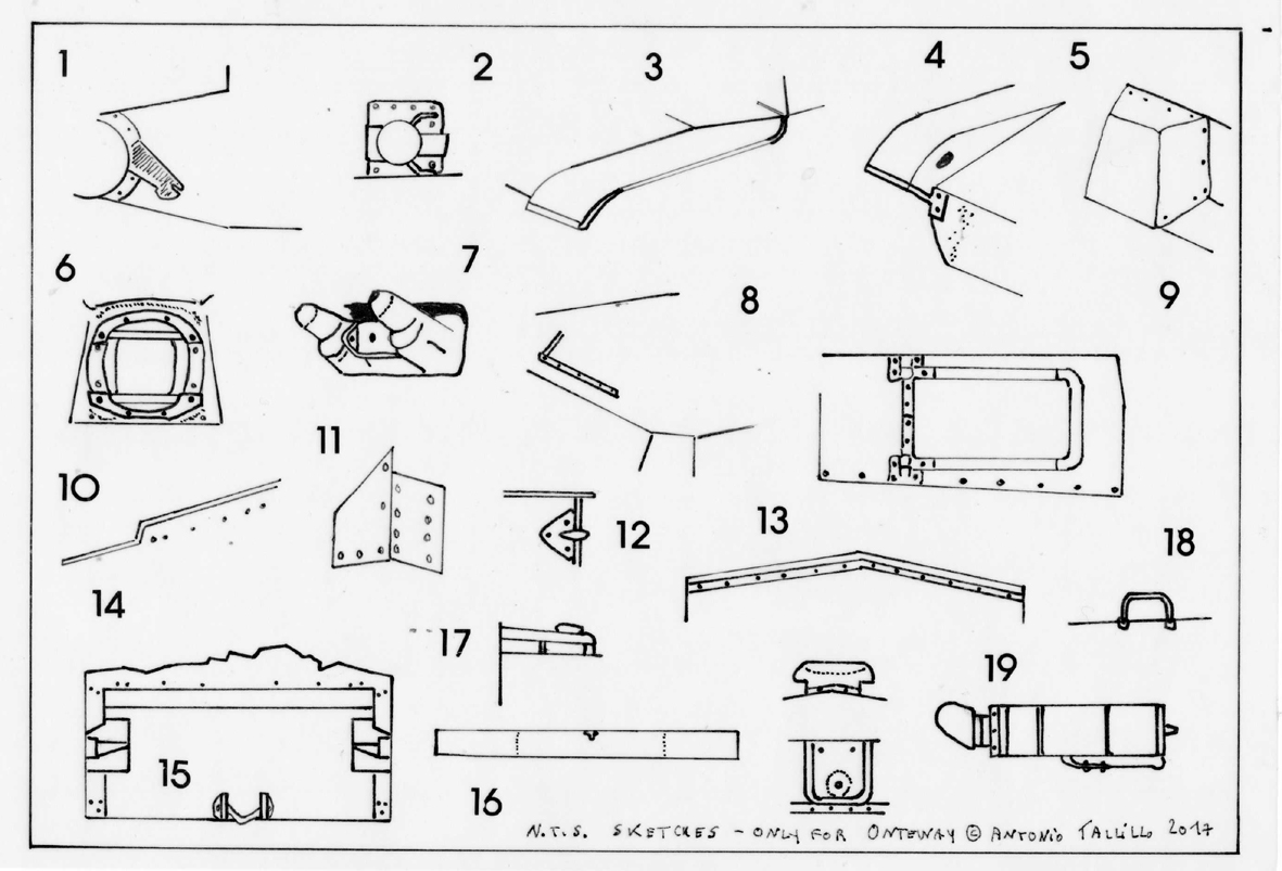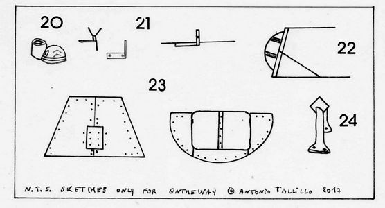 In the following paragraph we have tried to summerize all the necessary steps to make a real "perfetct" model from a kit which, as discussed, has many flaws. The tables which Antonio Tallillo drawn for On The Way will help a lot: follow the numbers in the drawings to read the explanation below.