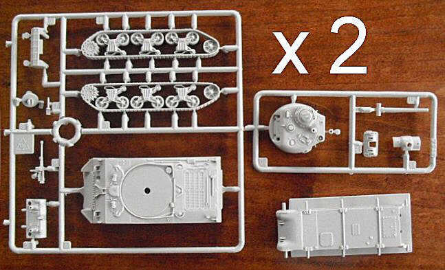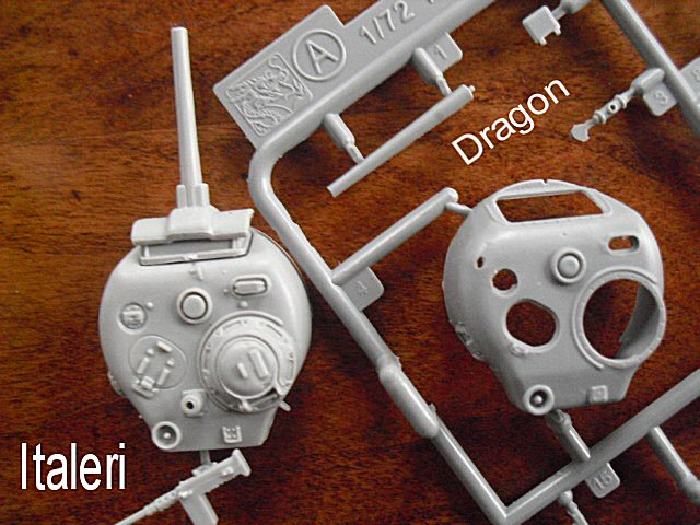 I added the turrets, both kits having the small loaders hatch. Yes, I know, the hatches are closed, but some challenging "cut and paste" work and we could open this one up (us being modellers), can't we? I also do not mind the solid lifting rings and headlight protecting frames; it's a child's play to shave them off and make new ones with some wire! We even could get the modelling feel back one might lose when just assembling all those perfect Dragon kits. I apologise if you'd sense some frustration from not being able to buy them at a decent price over here in Holland, but there it is. I need some alternatives and feel Italeri can provide my one. |