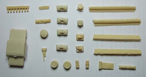Inside the tiny box you will find 35 resin pieces and a small PE
