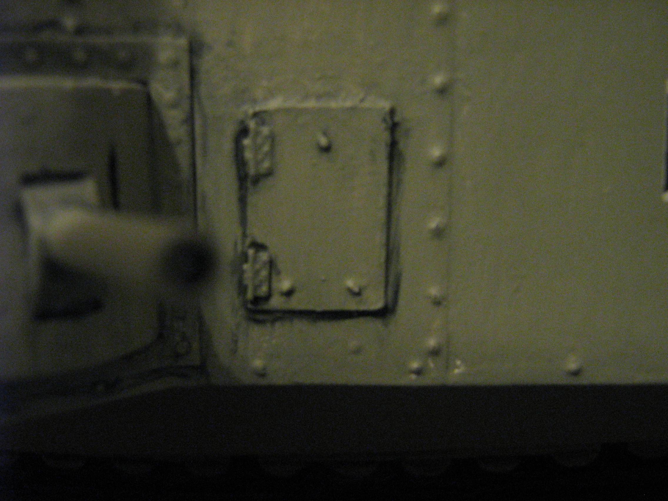 Right Photo: Scratch-built hatch with handle, hinge bolts