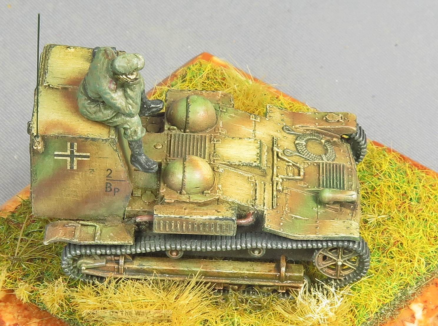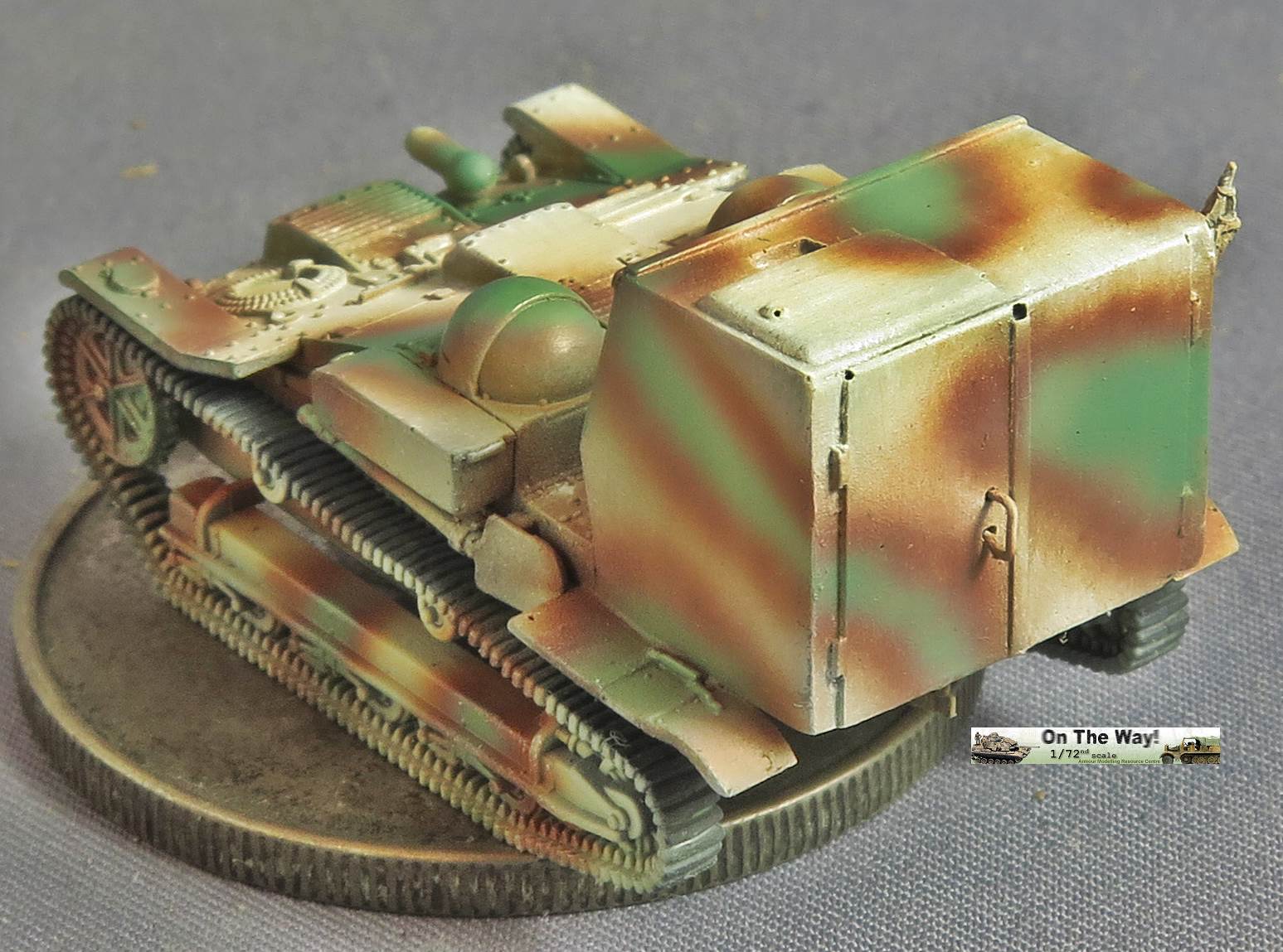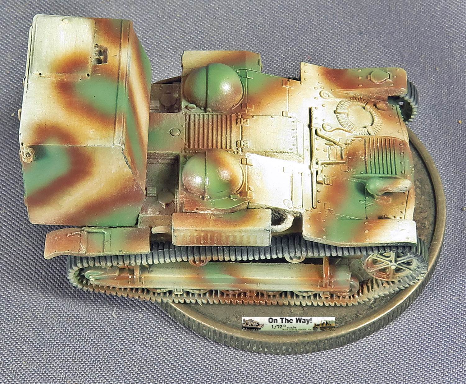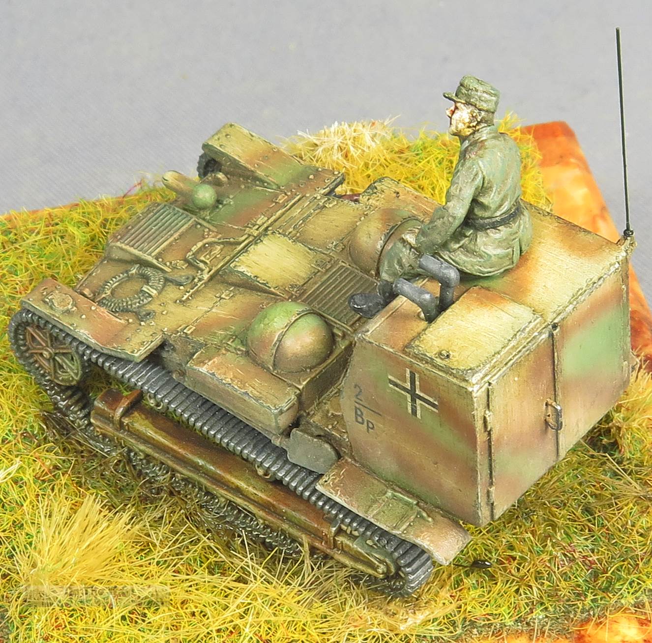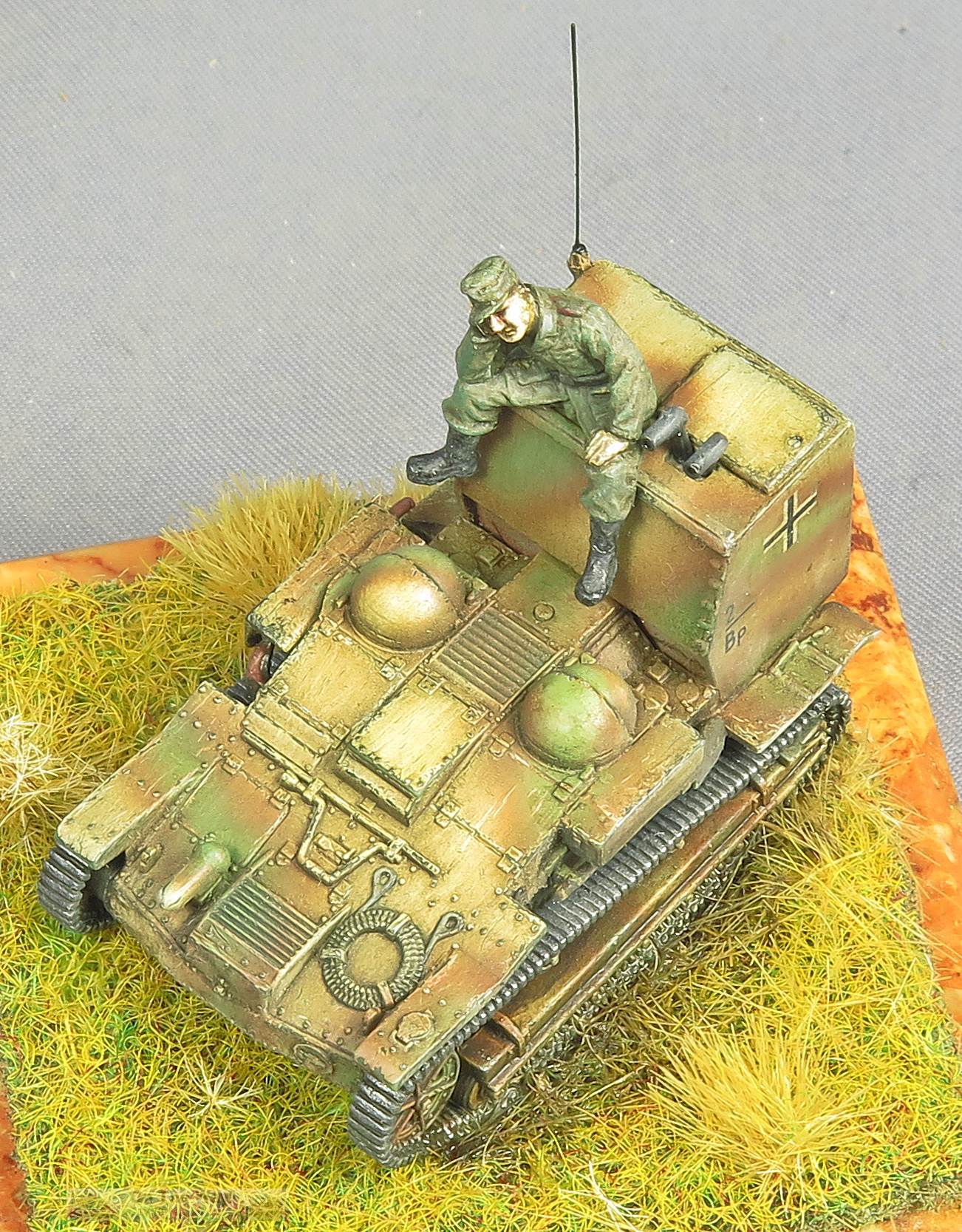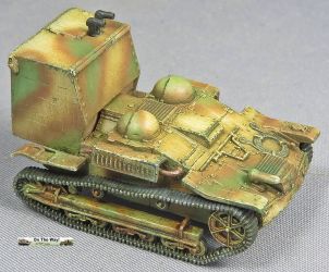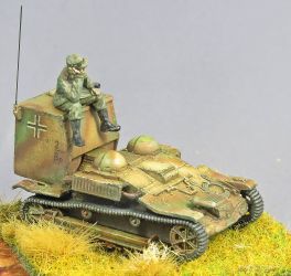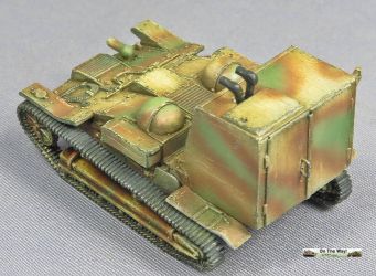The resulting vehicle is very tail heavy, due to the relative weight of the resin box, so the assembled vehicle is best put on a base. Decals for a vehicle of the Sturmgeschütz-Abteilung 200 of 21.Pz.Div were custom made by Aleran. A figure from Caesar was added.