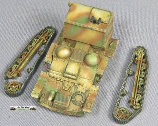 With sets LWP027 and LWP028, Lonewulf gives us an extra reason to buy more S-Model Chenillette UEs. The French version was previewed by Will Alcott, while the Beute-version, with Pak 36, was previewed by myself. Set LWP027 gives us the possibility to build one of the many interesting vehicles concocted by Baukommando Becker, in this case a small observation vehicle. It consists of a box to replace the bin, and which presumably housed a not-too-tall observer, together with new rear mudguards and binoculars. An exhaust with better detail than the kit part is also given. Casting is first rate, with a single airbubble at the end of one of the optical devices. As I was going to replace these extremities with hollow tubing, it's no real loss. Note that you can use either of the S-Model UE kits as they contain all the necessary parts. In case you use 720142 you will be left with a complete Pak 36 that can be put to good use elsewhere. As the instructions only go so far in telling you where to put everything, the following picture taken from the Lonewulf website (now defunct), might be useful.