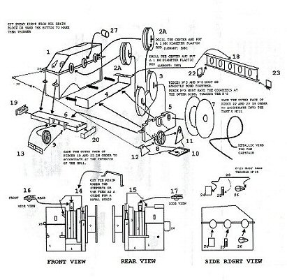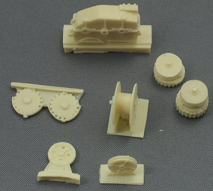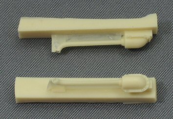 The manufacture also includes several long (and very thin) parts (e.g. for the crane), see picture. I don't consider myself an inexperienced modeller, but I have no clue how those two rods at the bottom of the picture can be cut away from their pouring block without breaking them. Even if you should succeed, how long will they last on the model? To me, including this kind of parts in resin for the sake of being complete seems pretty useless. Why not just provide some brass rod in the correct thickness and only the connection points in resin? |