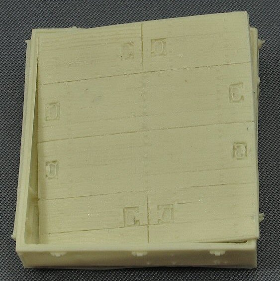 | The wooden floor of the Ladebrücke is cast in one piece, but I didn't find a proper way yet to insert it into the superstructure, due to the presence of a rim on both the upper and underside of that box. | |