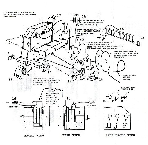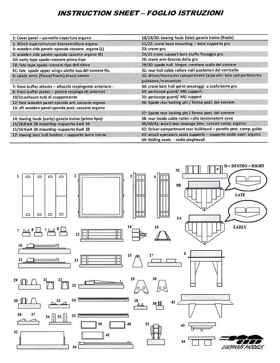 The two instruction sheets (one for the winch and one for the hull), backed up by two parts lists, are sufficient to execute the conversion. They do not only contain some nice images, they even give the exact place where to glue the small fittings on the hull, something often forgotten in resin kits. Most