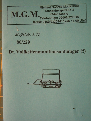 Material: Resin Quality: Casting is good with minimal flash on parts and good detail on kit Parts: 7 pieces (trailer, canvas top, x2 track assemblies, x2 track assemblies supports, axel) Instructions: Simple profile drawing Packaging: Zip-Lock bags Additional: another never-before made
