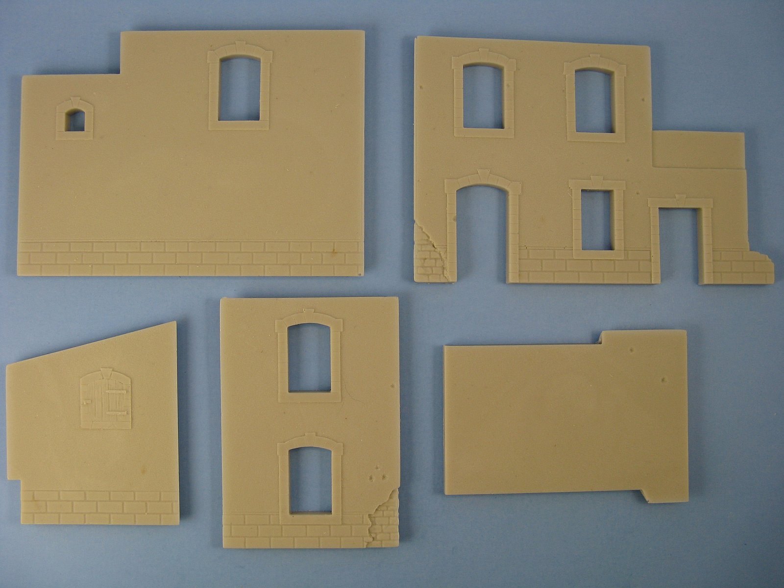 wall where the underlying bricks are exposed and even a few bullet marks marring the surface. There are no clear parts for the windows so these have to be obtained