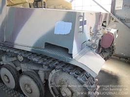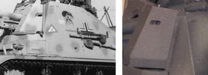 - early features like the early type track rack, lack of bolts on the rear flange of the lateral armor plates presence of the hand crank on the fenders and presence of vision ports where the radio operator used to be in the Panzer II. (I guess this will be present on rebuilt vehicles as well.) It is difficult to tell if "Kohlenklau" had this feature due to the box being in the way.