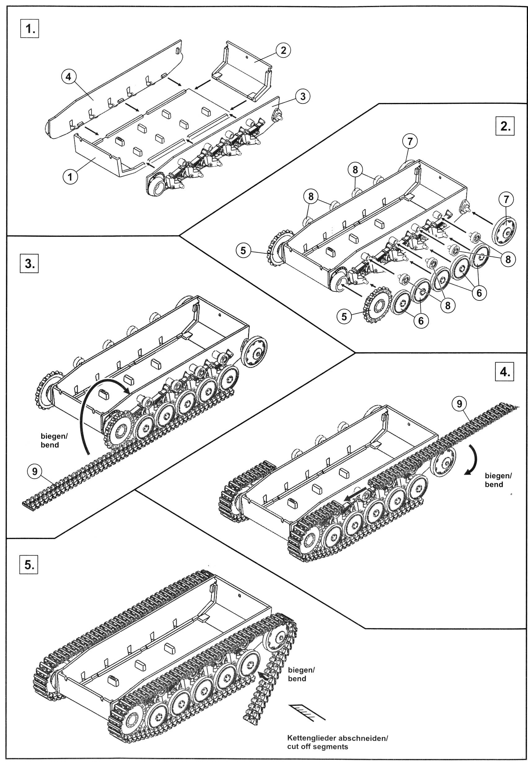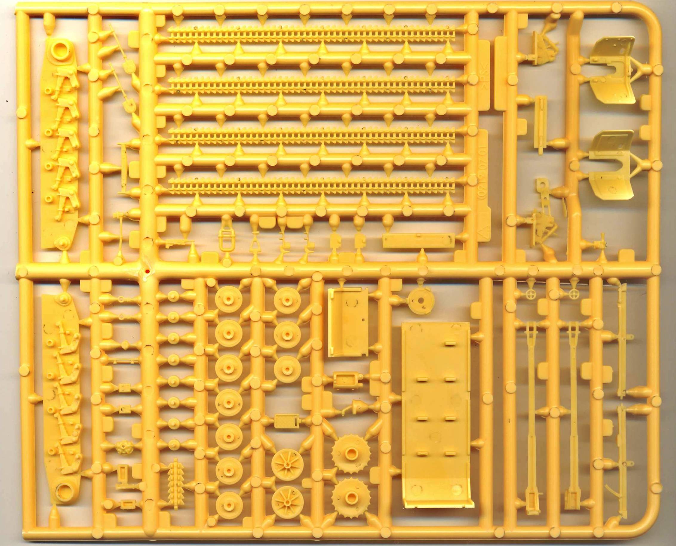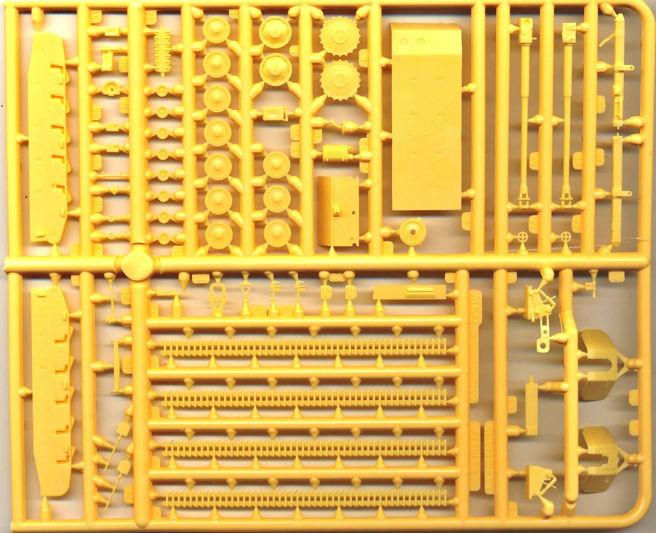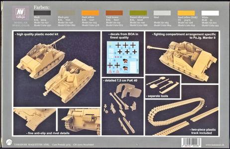 The backside of the box clearly shows the contents of the kit, so that "caveat emptor" hardly applies in this case. Notable features are the styrene "single length" tracks (like in the Demag), the double Pak shield and the gun barrel that is split length-wise.