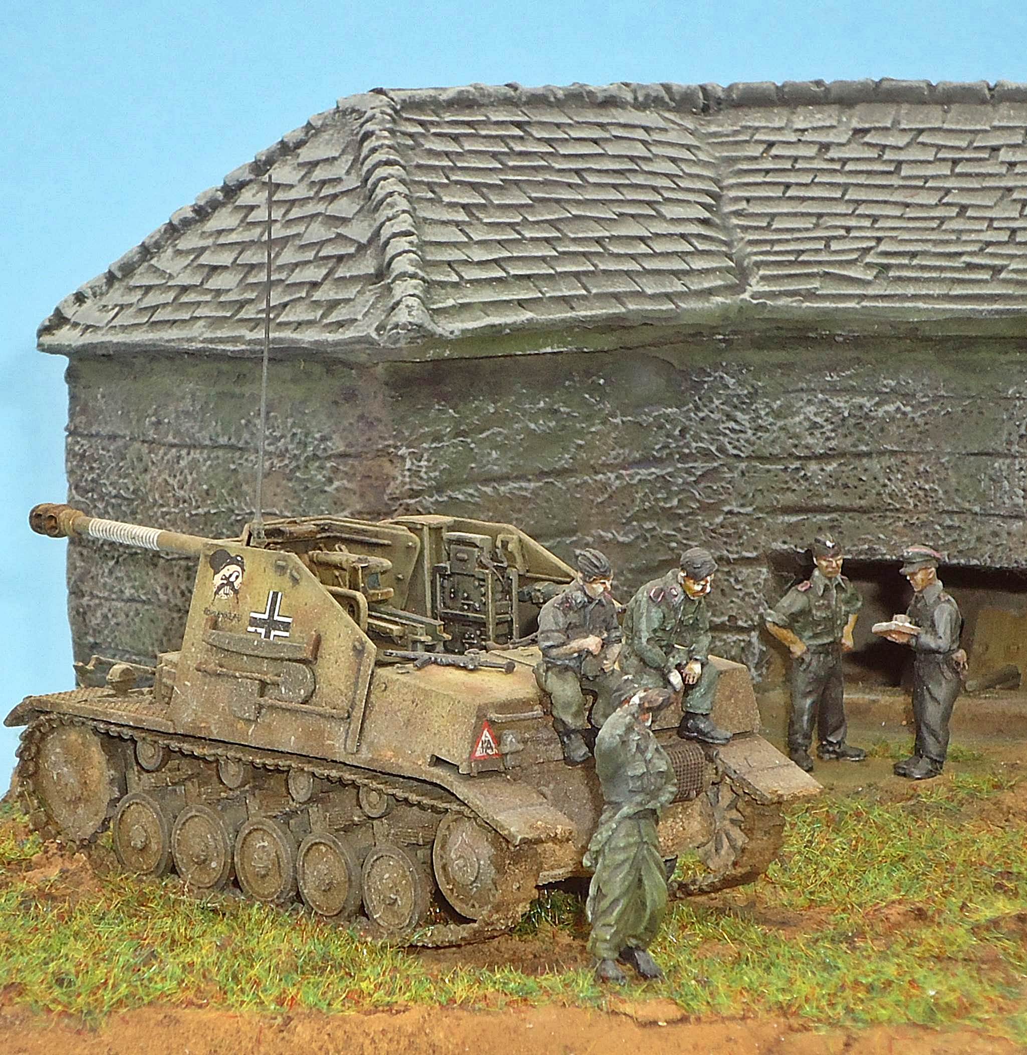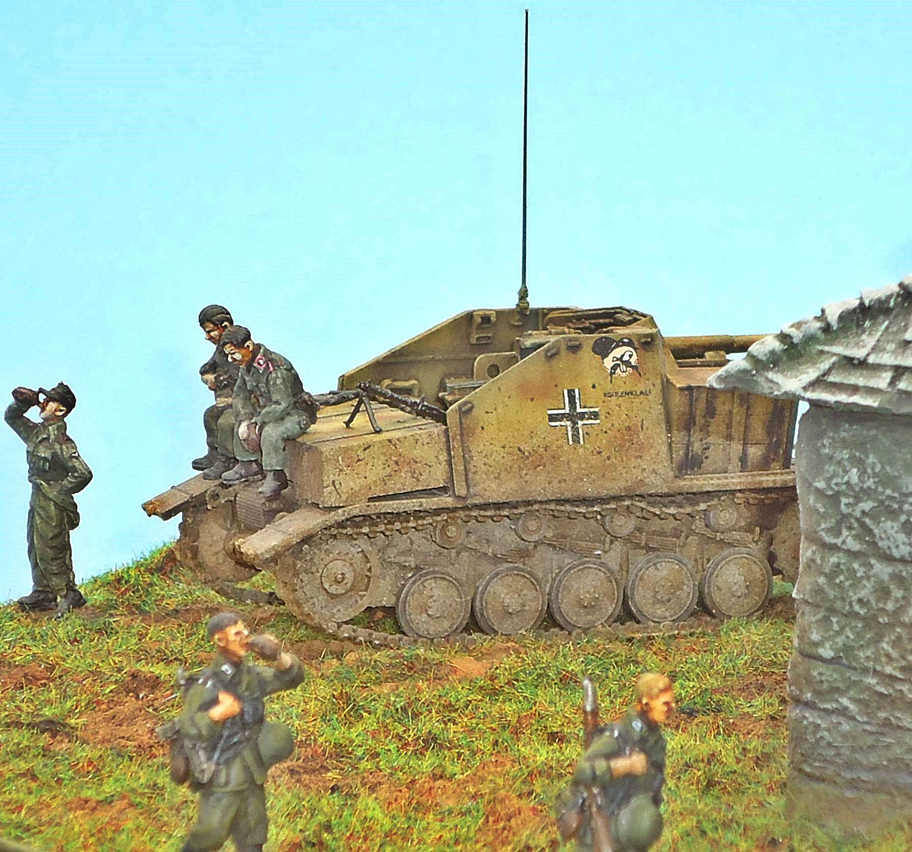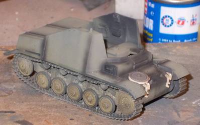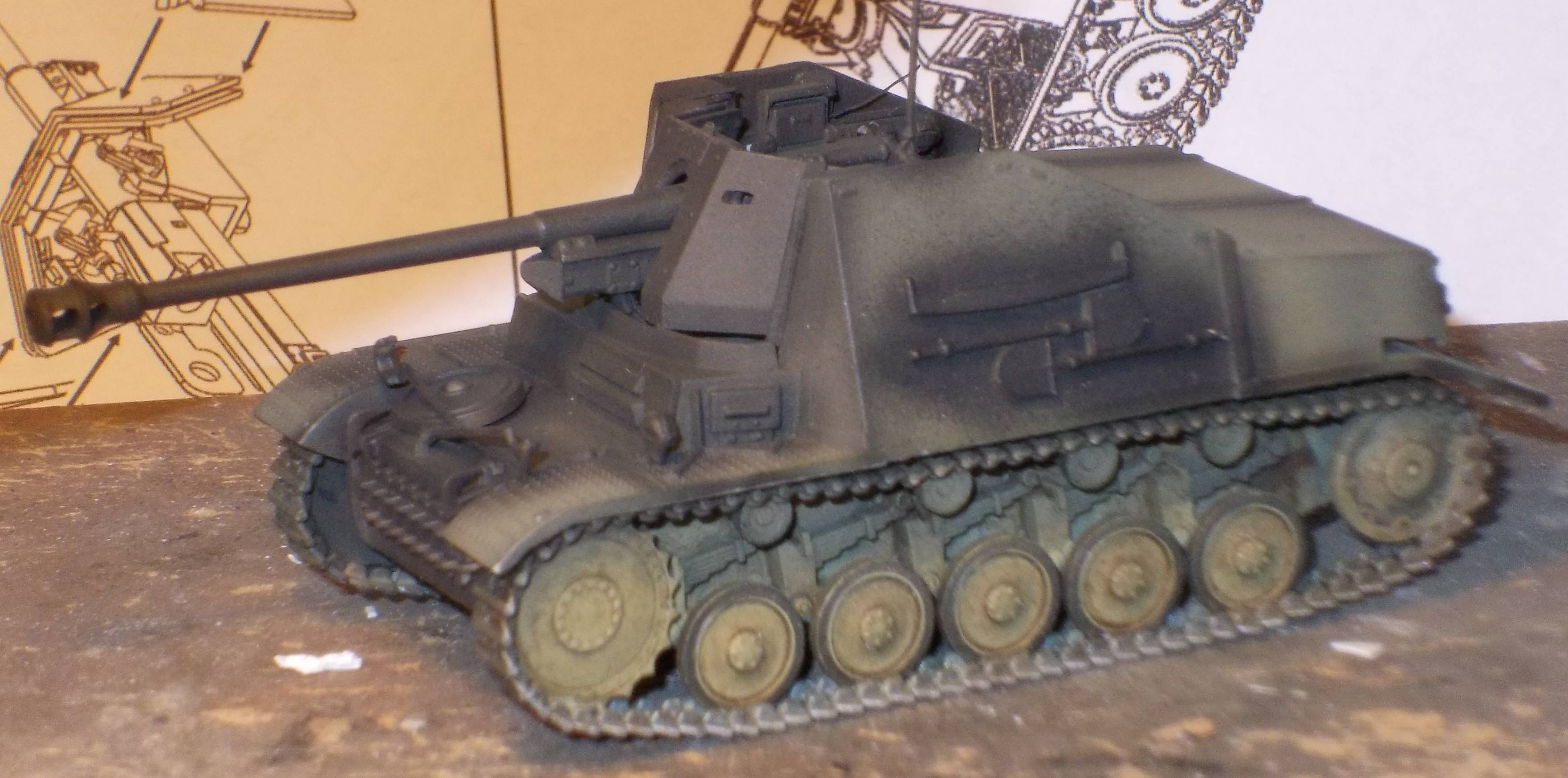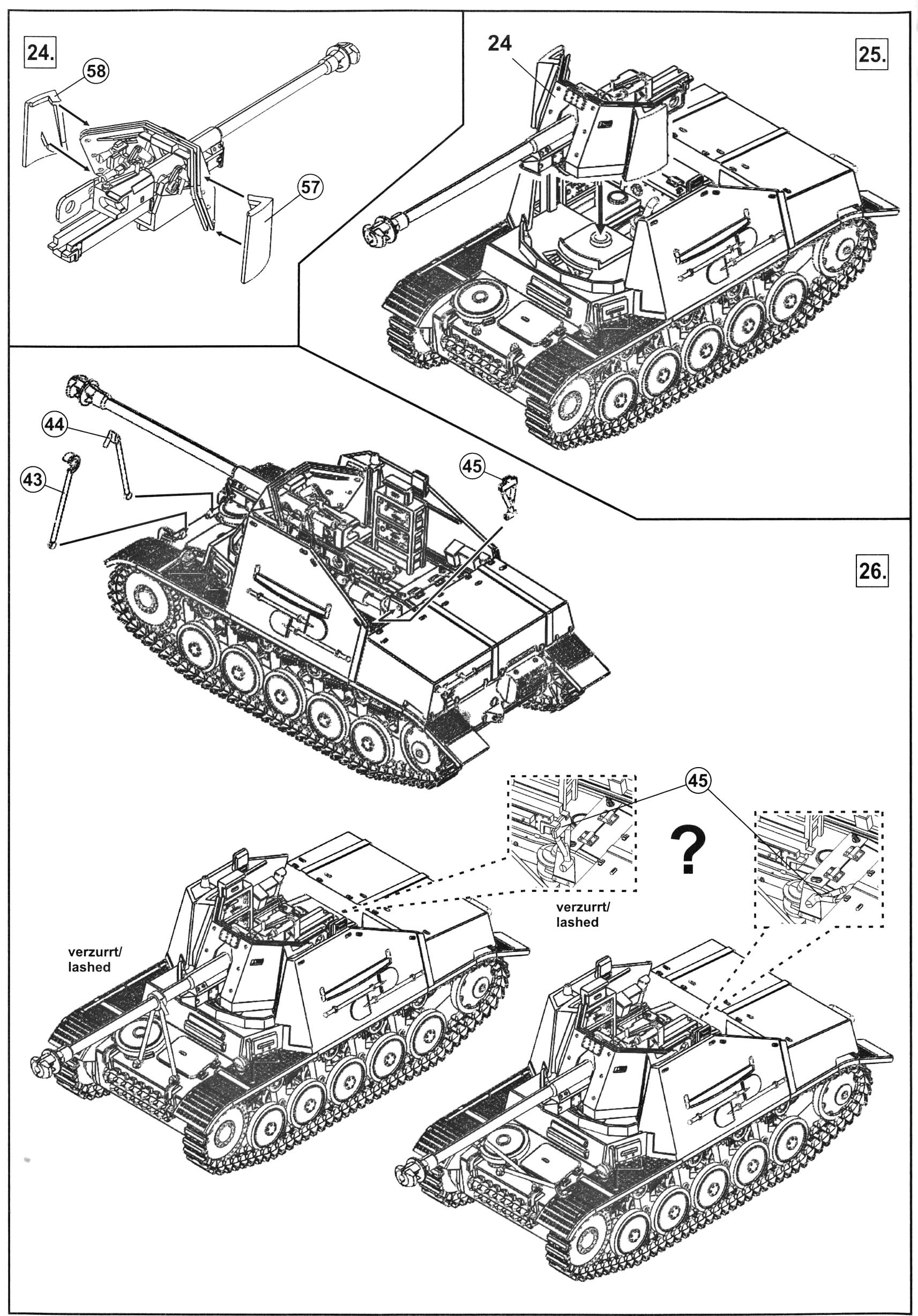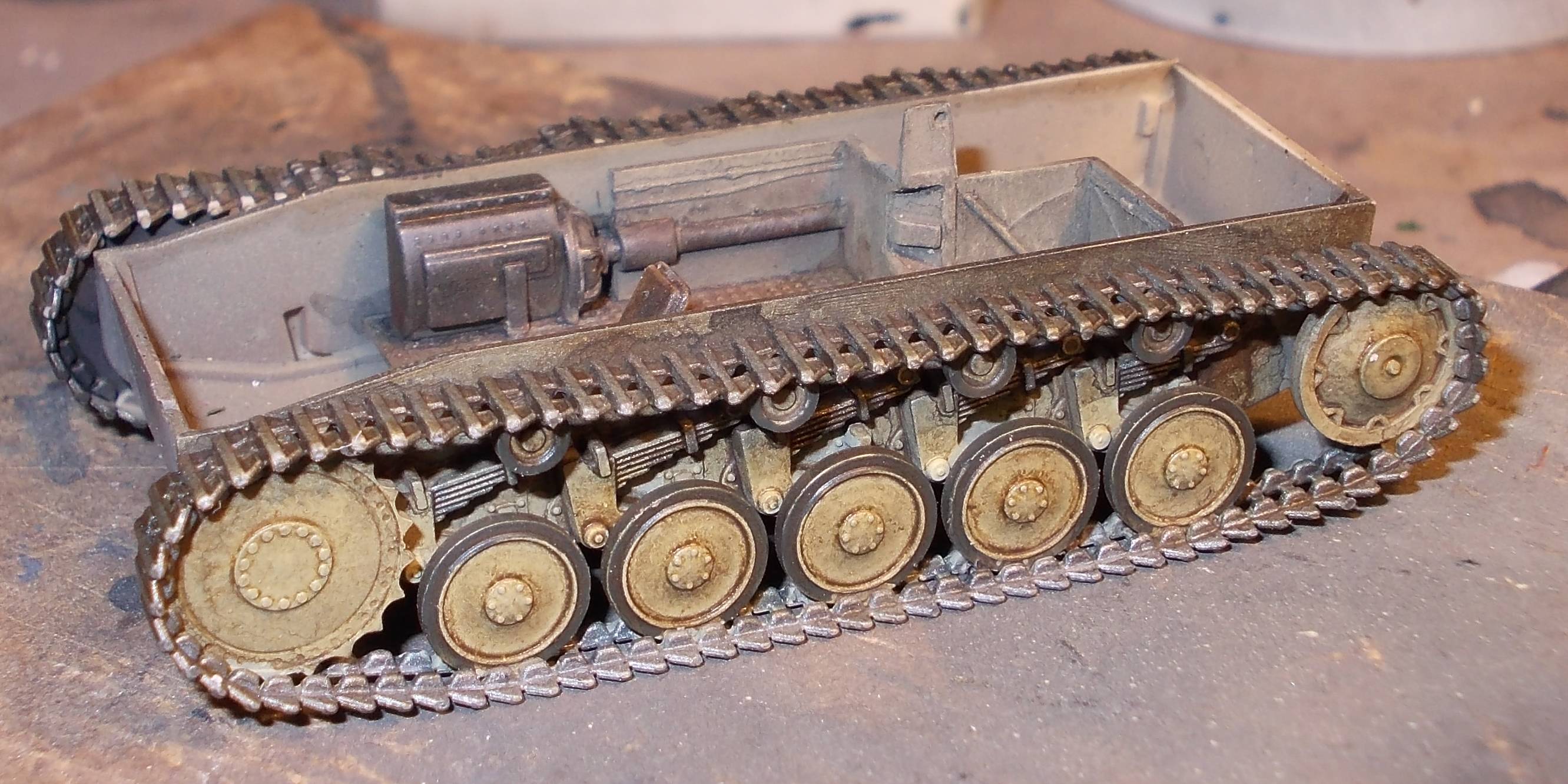 Modelers in search of some scratchbuilding can always add levers and other detail to the driver's compartment and transmission (see [2]), but I don't think these will be seen with the gun in place, and even less so when adding some crew figures. (For those who would like to know, the Marder II had only three crew members.)
