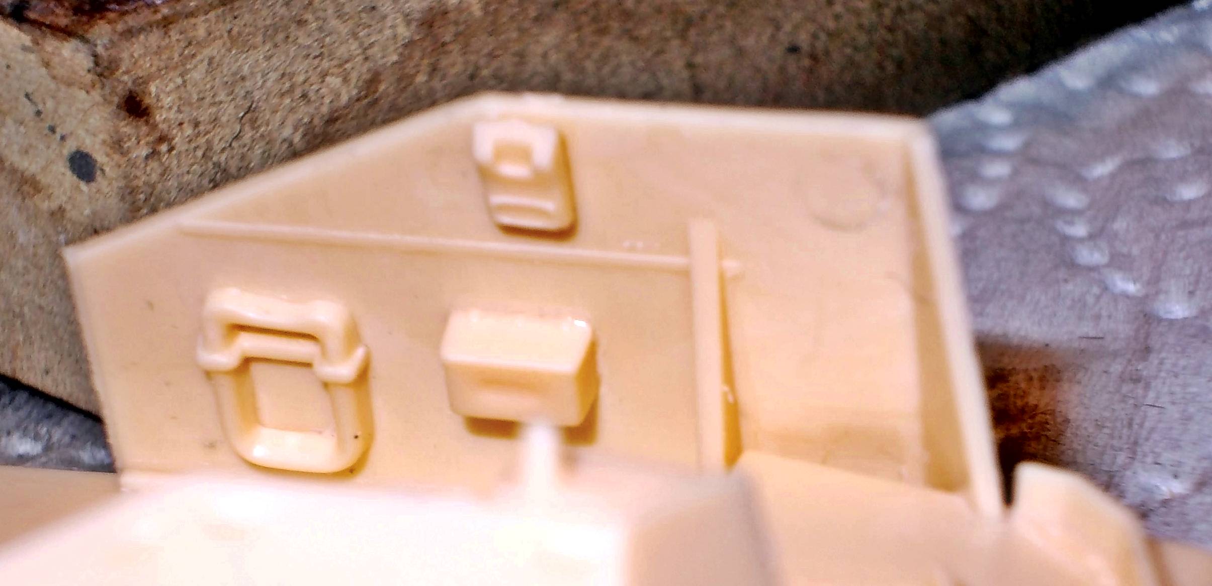 The small box-like structure at the top of the armor plate is a periscope. It had two positions: raised for combat, or lowered. MK72's instructions have you install them in combat position, which is fine, but I went for the lowered position.