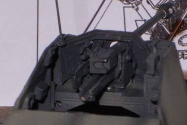 Even then you will notice that the "ears" that are added to the gun shield do not correspond with the real thing (and I am sure I installed those as the instructions indicate). On the real vehicle they come very close to the opening for the optics, and are thus more vertical than in the kit. In retrospect, I could have worked around that issue by installing the ears in a more vertical fashion, and sanding the top and bottom down to align them with the hull armour again.