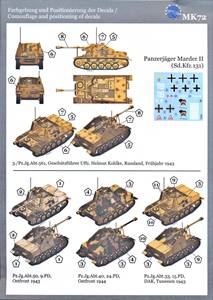 Marking options are provided for 4 vehicles, and MK72 offers a novel approach in that they don't use side-views, but three quarter views. One example even has a total of six views (and a painting on the boxtop).