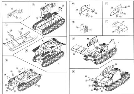 The manual is of the "common type", and presents no difficulties at first sight. The modeler will have the option to build the kit with the gun in traveling position or in firing mode.