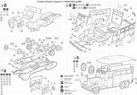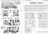 As seen in the boxart and directions, it is a bus-type body on the Zis-6 truck, rather than a box van like the PST/AER Parm-2 kit. The parts look to be of similar quality to the AER Zis-5. Many of the parts actually look the same as the AER kits also. Unlike AER/PST truck kits, this has separate clear window parts like the MW Beetle kits. A small decal sheet is also included.