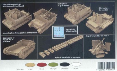 MACO in pale yellow styrene, and about 2/3 of the parts are from Revell's Pz IV Ausf. H kit. Within my kit I counted 34 MACO parts for the Flak 43 gun