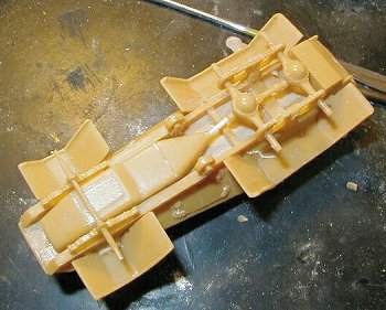 This is only my second experience with a kit in resin; the first one was the Alby Steyr, and I must say that this model from Mars was much more difficult. Practically all the parts, including the small ones, come attached to resin blocks. The hull and the chassis in particular were very difficult to separate. Follow some photos of the different ways that I used for this tedious operation. It consumed great part of the time for the assembly.