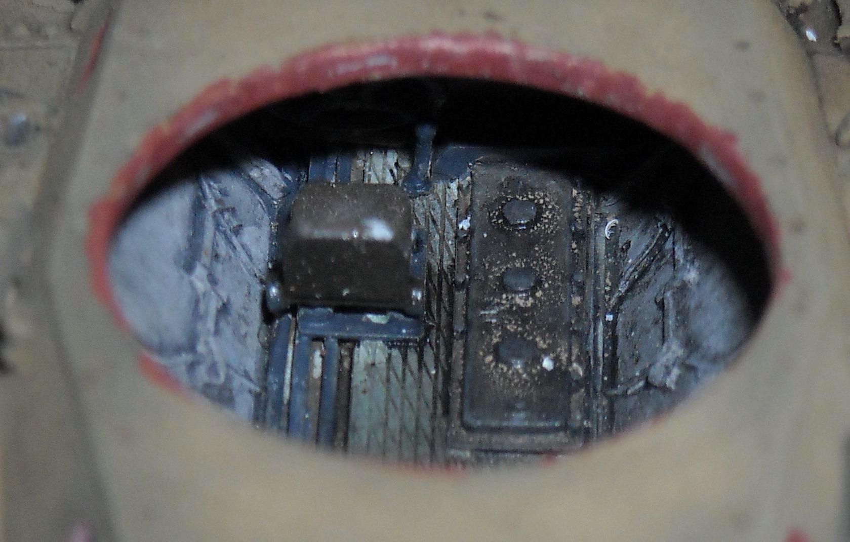 An almost complete interior is provided for the hull and turret, but there are so many parts that some interfere with one another. For instance, some of the turret parts interfere with hull parts, impeding full turret rotation, and the steering wheel interferes with the gear levers. I also feel the steering wheel should be mounted more to the left to be in-line with the driver's seat.