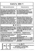 • Only the early Sd.Kfz.234/2 was fitted with two headlights; all other vehicles only had one headlight on the left fender. It seems I am not the only modeler who has overlooked this detail. Note that a (post-war ?) movie appears to show an Sd.Kfz.234/1 with two headlights, though.
