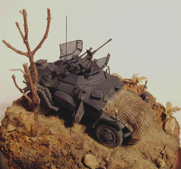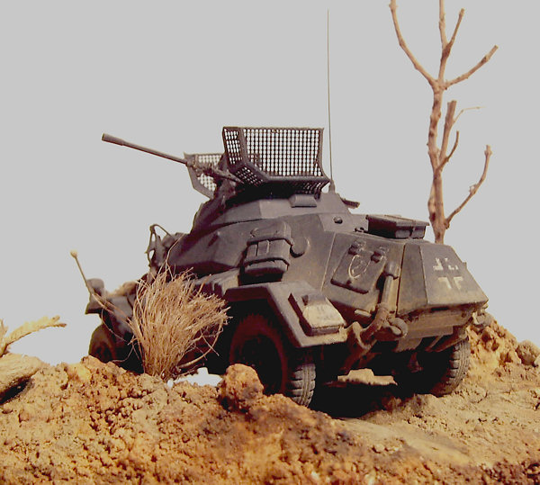 ones for LSSAH !). Detail is less crisp than the Mars kit. So, at this point it all depended on your personal taste, requirements and budget. For a while we also had the Goffy interior set, which brings the ICM kit a long way: you have a good interior, open doors (but closed visors), but still a poor turret and wheels. The total retail price of ICM + Goffy is about the same as the MarS kit. As of 2012, it seems that Goffy is no longer in business and this set is no longer available. I guess we still do not have the definite 222, but if you want a cheap, easy to build, accurate 222 with all hatches closed and plan to put figures in the turret, I would opt for the ICM (or Dragon) kit. (A lot depends on the retail price of the latter. I've seen ICM kits in a very wide range of prices.) If you want a one stop, detailed 222 with all hatches open, go for the Mars kit, and perhaps add a better turret mesh and nose armor, and tweak it here and there. Pictures above: