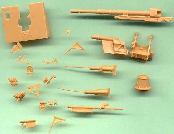 Above are representative gun parts (again this is not all the parts). Detail is superb. MarS is certainly a company to compare most other resin model companies against. The few long parts in the center of the scan that are a little warped can be straitened in very hot water and on a flat surface.