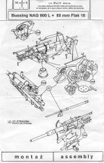 Above is a scan of the 88-mm Flak-36 assembly instructions. This is the same mount as on the towed version of the gun minus the cruciform stand. This gun is markedly superior to Hasegawas Flak 18 and Flak 36 kits in both detail and accuracy.
