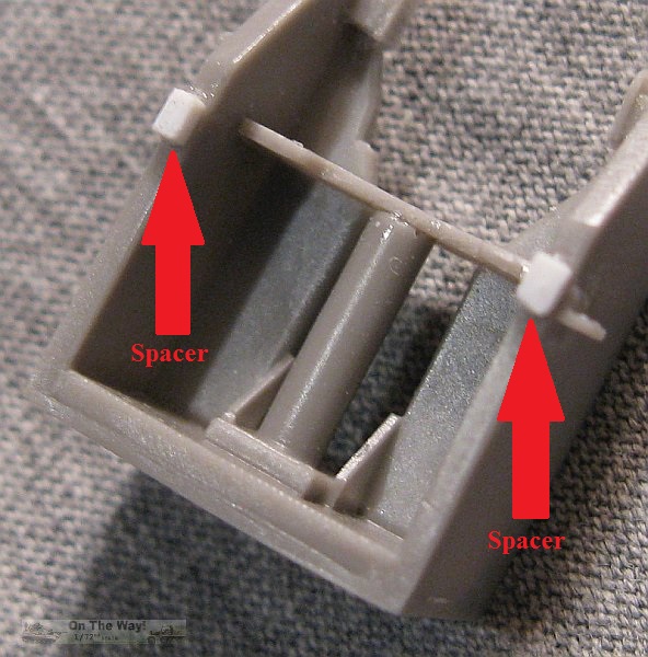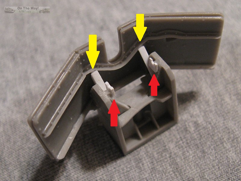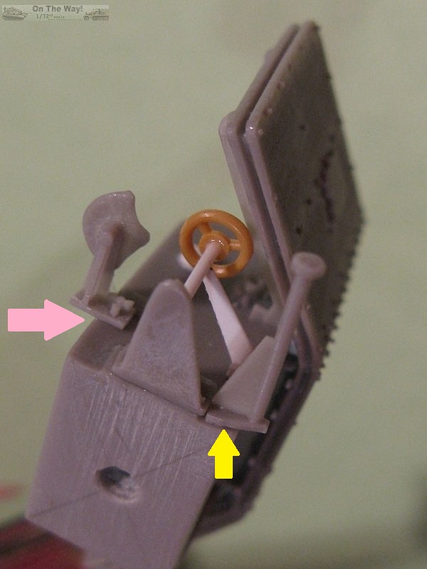 from the mount (pink arrow in picture below right)and the rectangle should be removed. I didn't notice this error until it was too late to fix. The gunner's