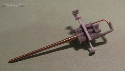into the hole. The kit's poor resin brace that runs around the right side of the breech protector was replaced with a piece of copper wire. The final touch was a