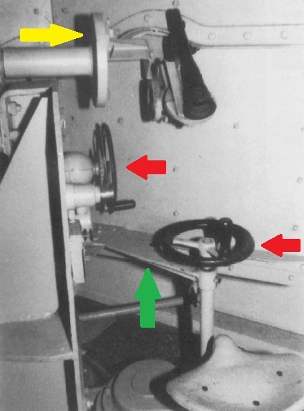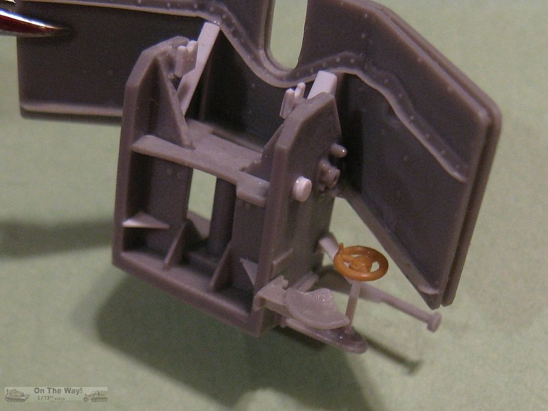 To the gunner's position the missing gun traverse wheel with its associated shaft and brace was added. On the right upright of the mount is a raised
