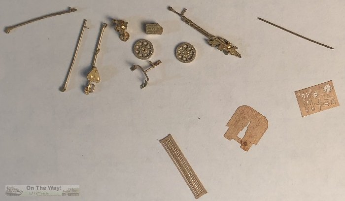 anti-aircraft and ground use; a separate etched-brass shield; and a short length of wire to use for making the handles of the spade grip and the axle for the carriage. A length of
