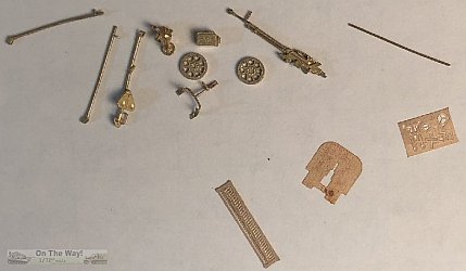 This set consists of 4 cast bronze parts for the barrel assembly, and insert between the barrels, the drive assembly, and the trigger assembly; a small photo-etched fret for the spade