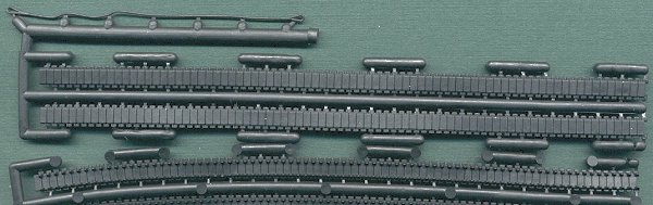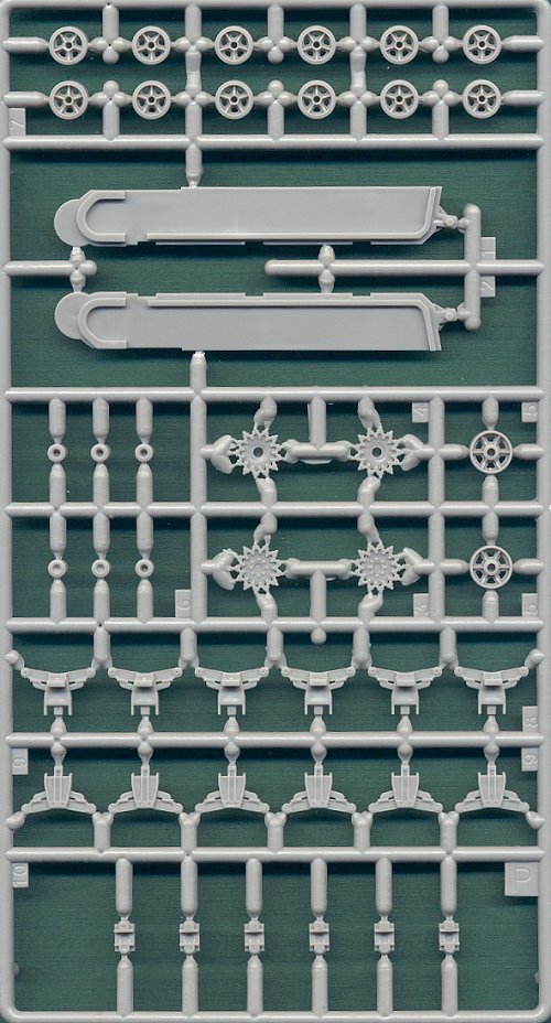 The three-piece final drive housing is superbly done, with separate parts for the raised ridges so that the bolt detail could be included (although there is no line down the center of these ridges to represent the two plates bolted together). The wheel suspension units are incredibly detailed. I was hoping that we'd be able to articulate the wheel suspension arms such as we can on the Extratech M10 series, but alas, this ability is not provided. The open-spoke wheels are the best M3/M4 wheels I've seen in this scale. The turret is very detailed with a complex construction process necessary for the retention of the detailed commander's cupola. As far as I can tell, there is no provision to build this without the cupola to represent the late British version of the Lee. Again, the 37mm gun can be made moveable if the modeler so desires. The tracks look nice, and are very detailed. Normally I do not like rubberband tracks because of the difficulty in replicating track sag, but that's not an issue with this vehicle, so it should not be a problem here. Mirage informs me that these tracks are made with a new plastic formulation, which I assume allows for easier gluing and paint retention.