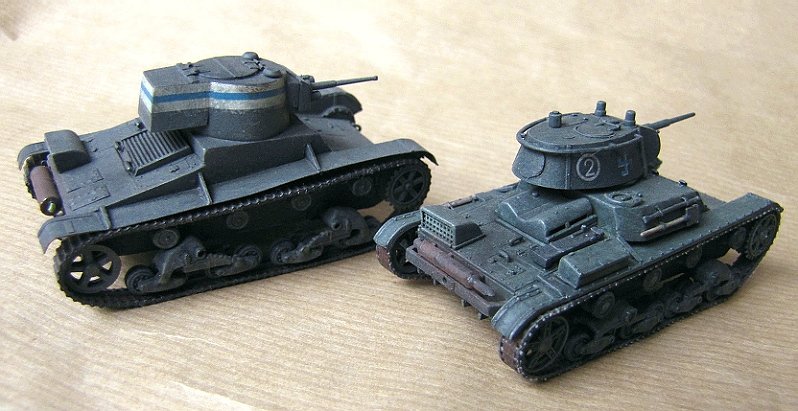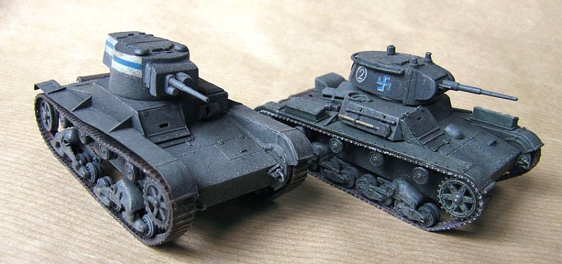 Recently I have been building Finnish armor from the WWII period. The main Finnish tank at the outbreak of the WWII was the British Vickers "6 ton tank" armed with a Swedish Bofors 37 mm gun. During the war the Finns captured and pressed into service a substantial amount of Russian T-26 tanks, representing several different sub-types. No Finnish collection is complete without the Vickers, and as the most numerous war trophy (114 pcs) in Finnish use the T-26 is also an extremely important model from the Finnish point of view.