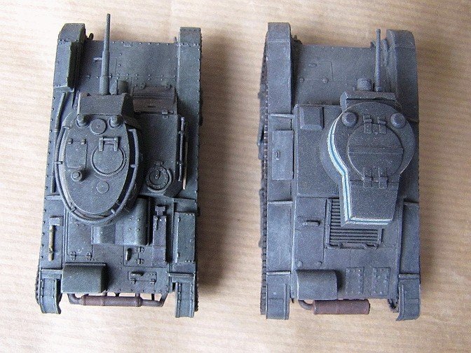 The T-26 is almost a pure carbon copy of the Vickers, and so I decided to build both these types simultaneously, side by side, and do some part swapping during the process if necessary. I did not aim at 100 per cent accuracy, but tried to reproduce reasonably convincing replicas of the original vehicles. Therefore I did not hunt down and correct all possible deviations from the forms and dimensions of the actual tanks.
