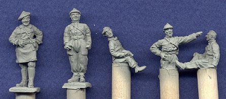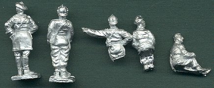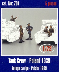 ![]() This is the first release in what I hope is going to be a long line of metal figure sets from Mirage. This company releases some of the best plastic vehicle kits on the market today, and these new figures are continuing that trend of fine products. The set includes five figures: two standing upright, two seated, and one 2/3 figure for placement in an open hatch. The standing figures measure about 24mm tall without their headgear, which makes them approximately 5' 8" (1.73 m) tall in 1/72nd scale.