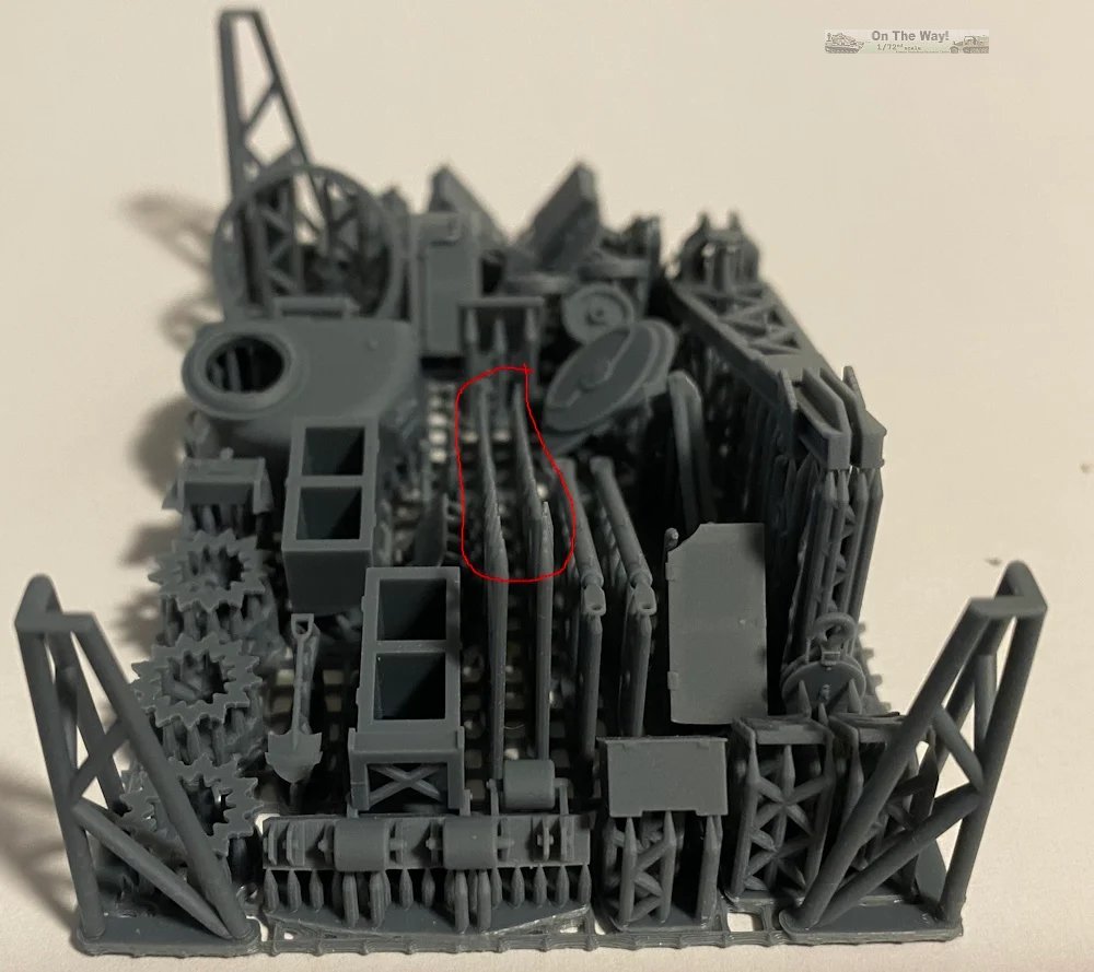 - parts PR29 (extended boom struts) and PR17 (dummy main gun) were broken loose from the printing supports but undamaged