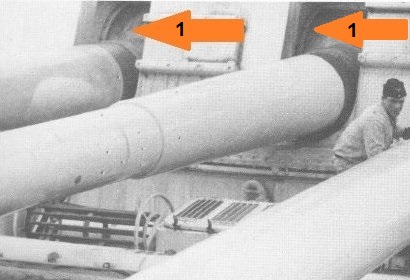I found a closeup photo of Gneisenau's turret hinting at their presence (orange arrows w. black 1 - top photo). An interior photo of this turret