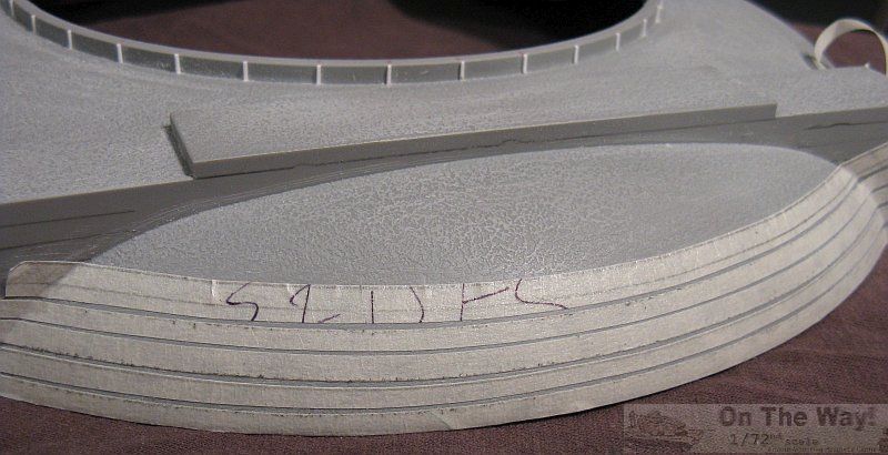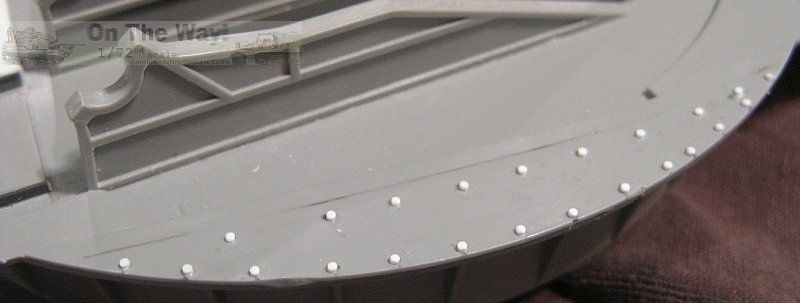 bolt locations. Disks to represent the bolt heads were punched from plastic sheet (all 108+ of them) and glued at the marks.