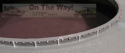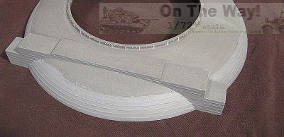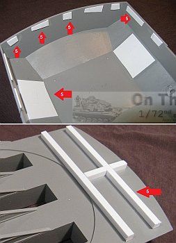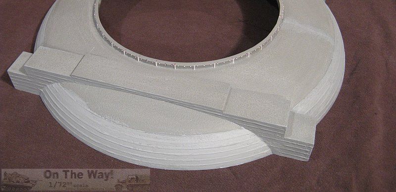 of the same diameter as the turret ring, and marked the intervals, using the base's join line as center. After taping the cardboard to the ring, each stiffner