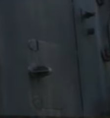 - Add a handle to the personel door. Its configuration is just a guess on my part. Current photos show a modern push bar style safety handle.